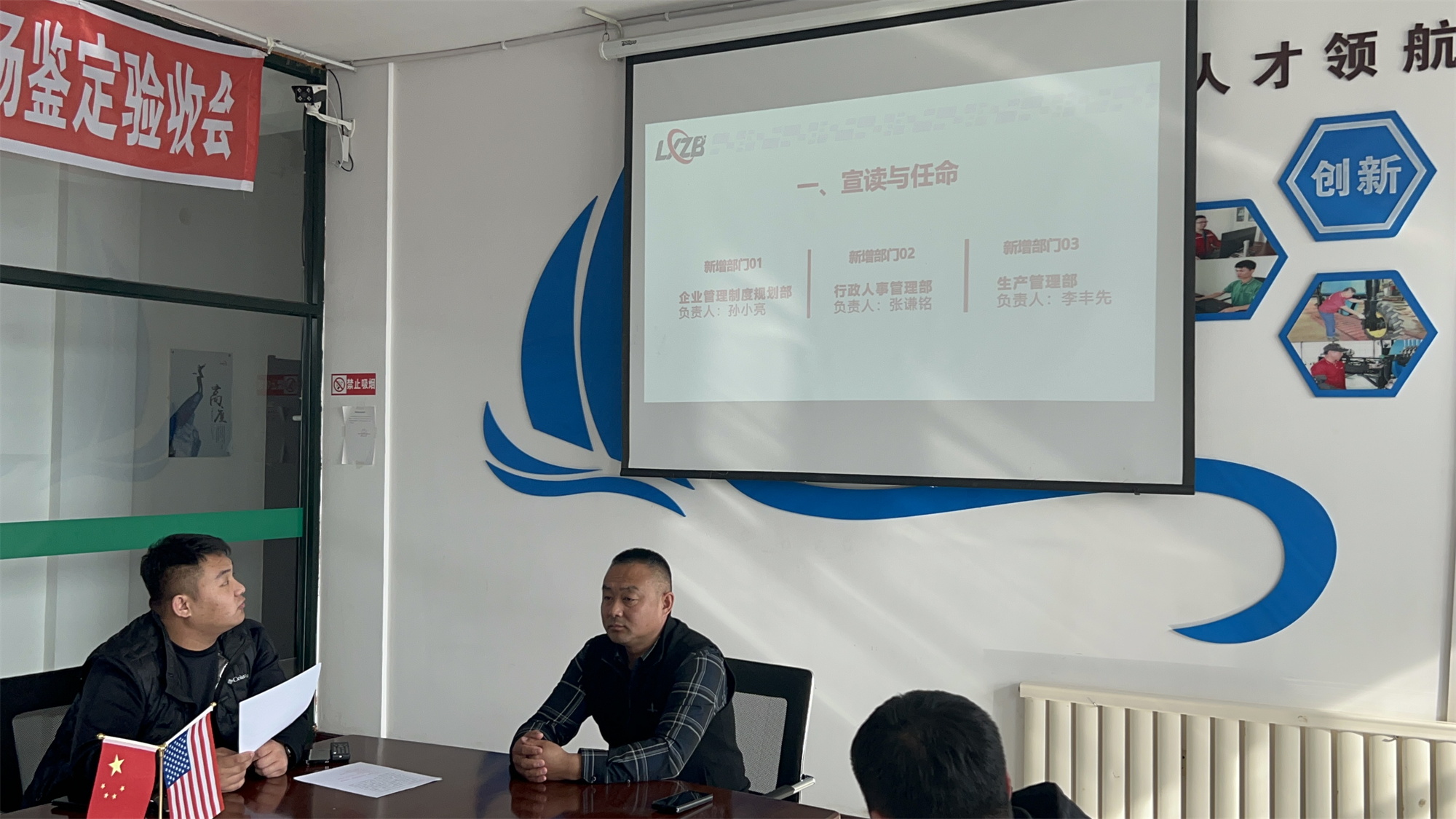 會議第二項宣布與任命。由張謙銘副總經(jīng)理宣布新建設(shè)部門“企業(yè)管理政策規(guī)劃部門、行政人事部門、車間管理部門”并且任命負(fù)責(zé)領(lǐng)導(dǎo)。講解介紹2024年公司組織架構(gòu)。