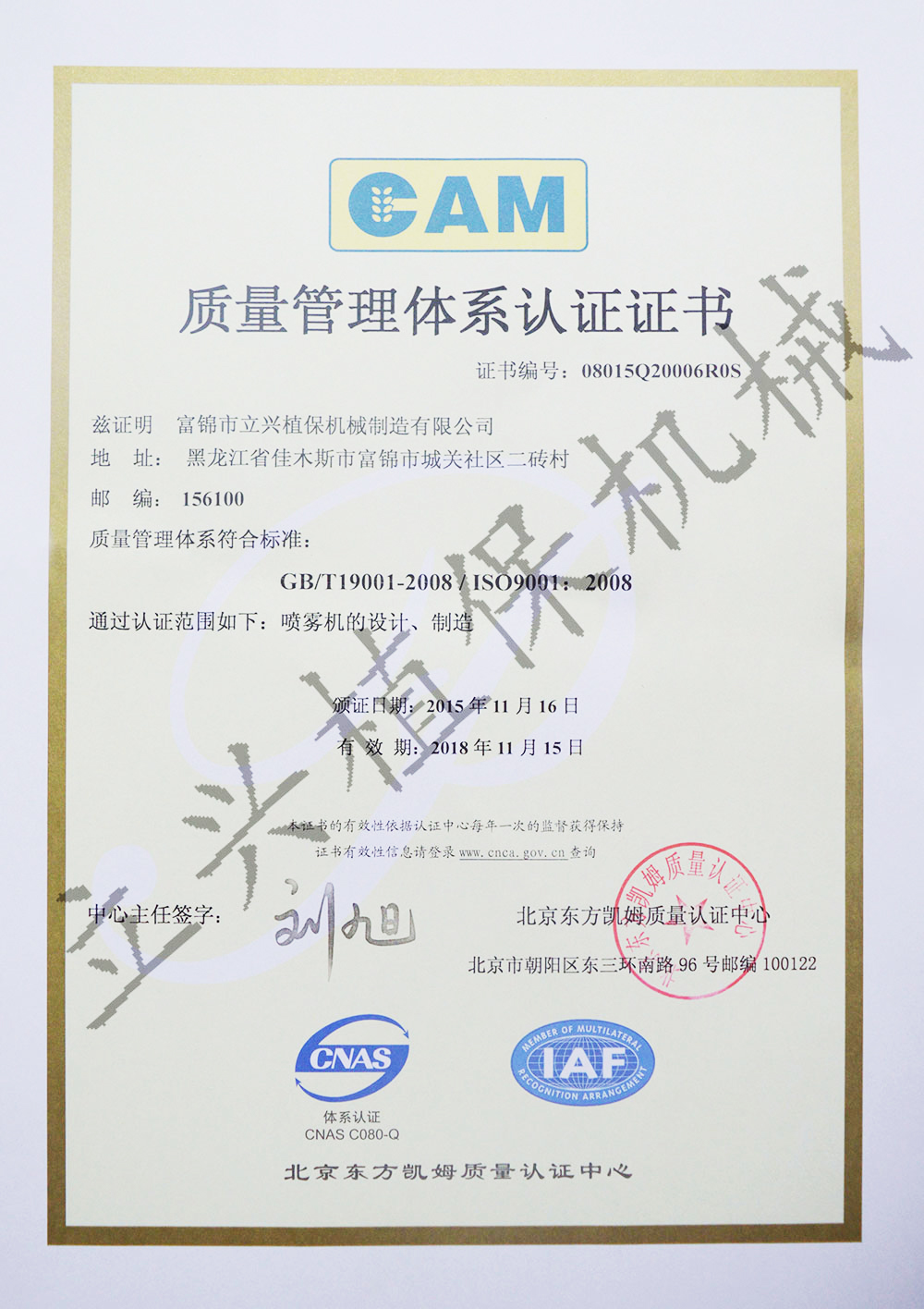 ISO9001質量管理體系認證證書