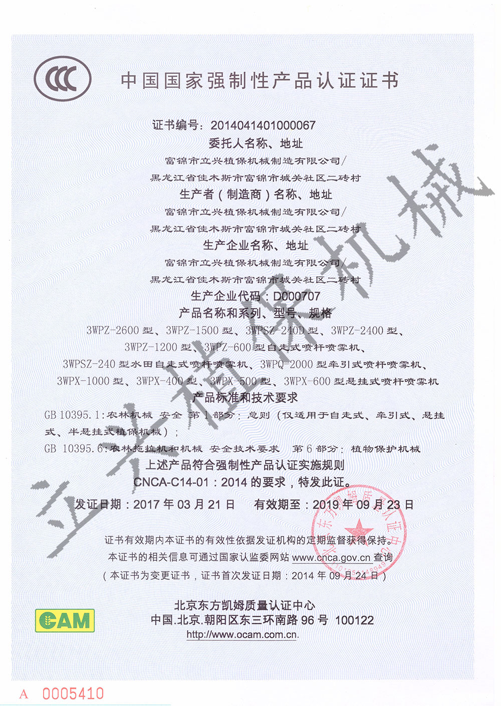 CCC國家強制性產品認證證書